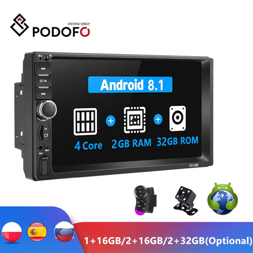 Podofo Android 2 Din Car Radio RAM 2GB+ ROM 32GB Android 7'' 2Din Car Radio Autoradio GPS Multimedia Player For Ford VW Golf